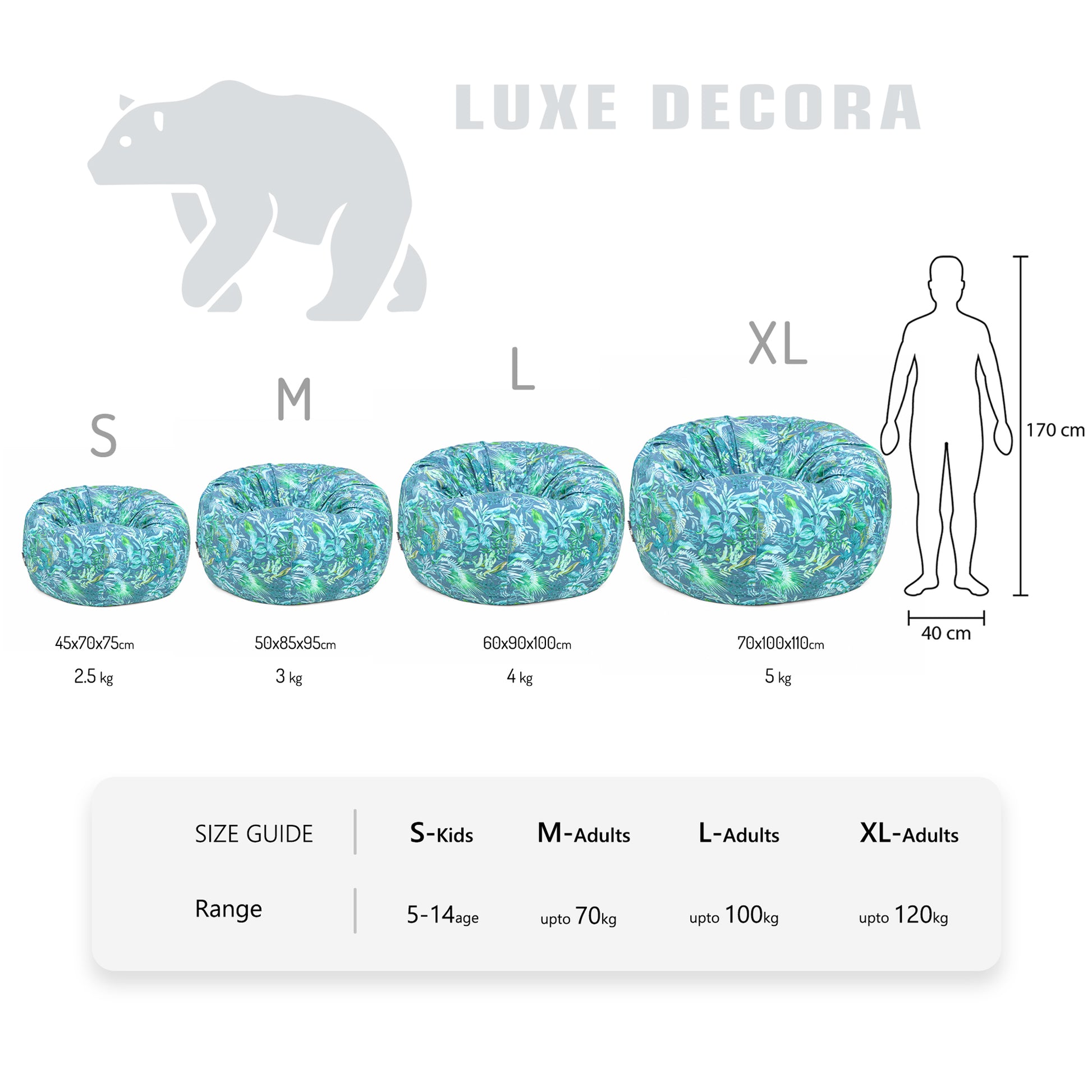 The Luxe Decora Tropical Lagoon is designed for those who value both style and practicality. Its removable cover makes maintenance a breeze, ensuring your bean bag stays as vibrant as the day you got it. With a blend of contemporary design and premium materials, the Tropical Lagoon is the perfect addition to any home that seeks to combine the allure of nature with modern living.
